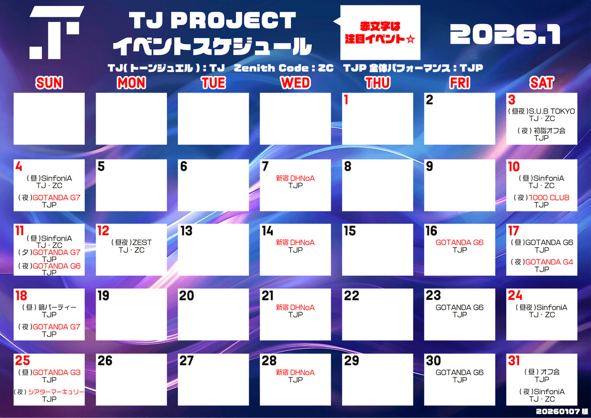 ・1月4日(日) (昼)AKiBA SinfoniA、(夜)GOTANDA G7(TJP)