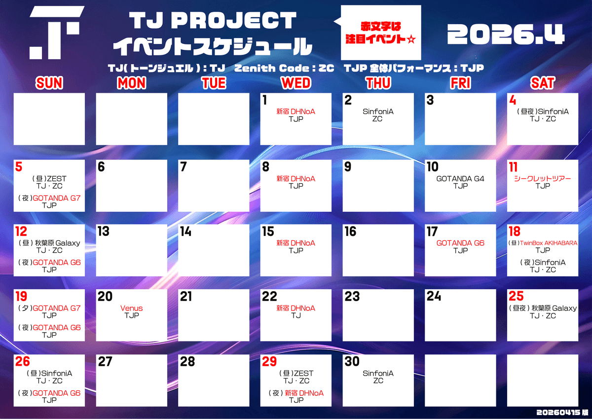 ・4月29日(祝) (昼)ZEST、(夜)新宿DHNoA(TJP)