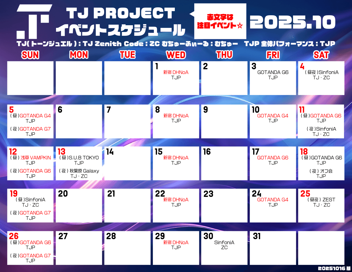 ・10月13日(祝) (昼)S.U.B TOKYO(TJ、ZC、むちゅー体制)